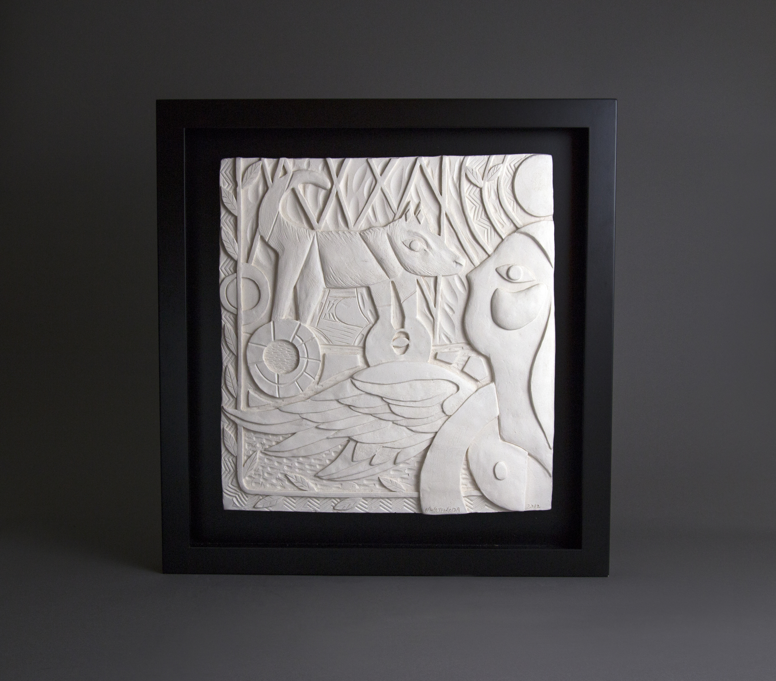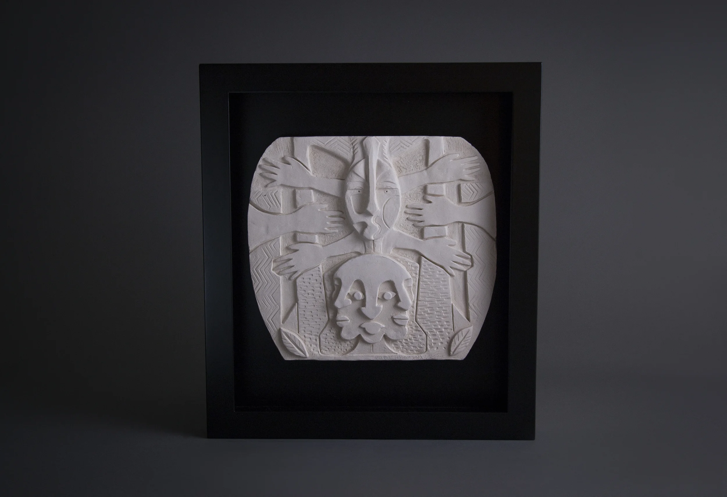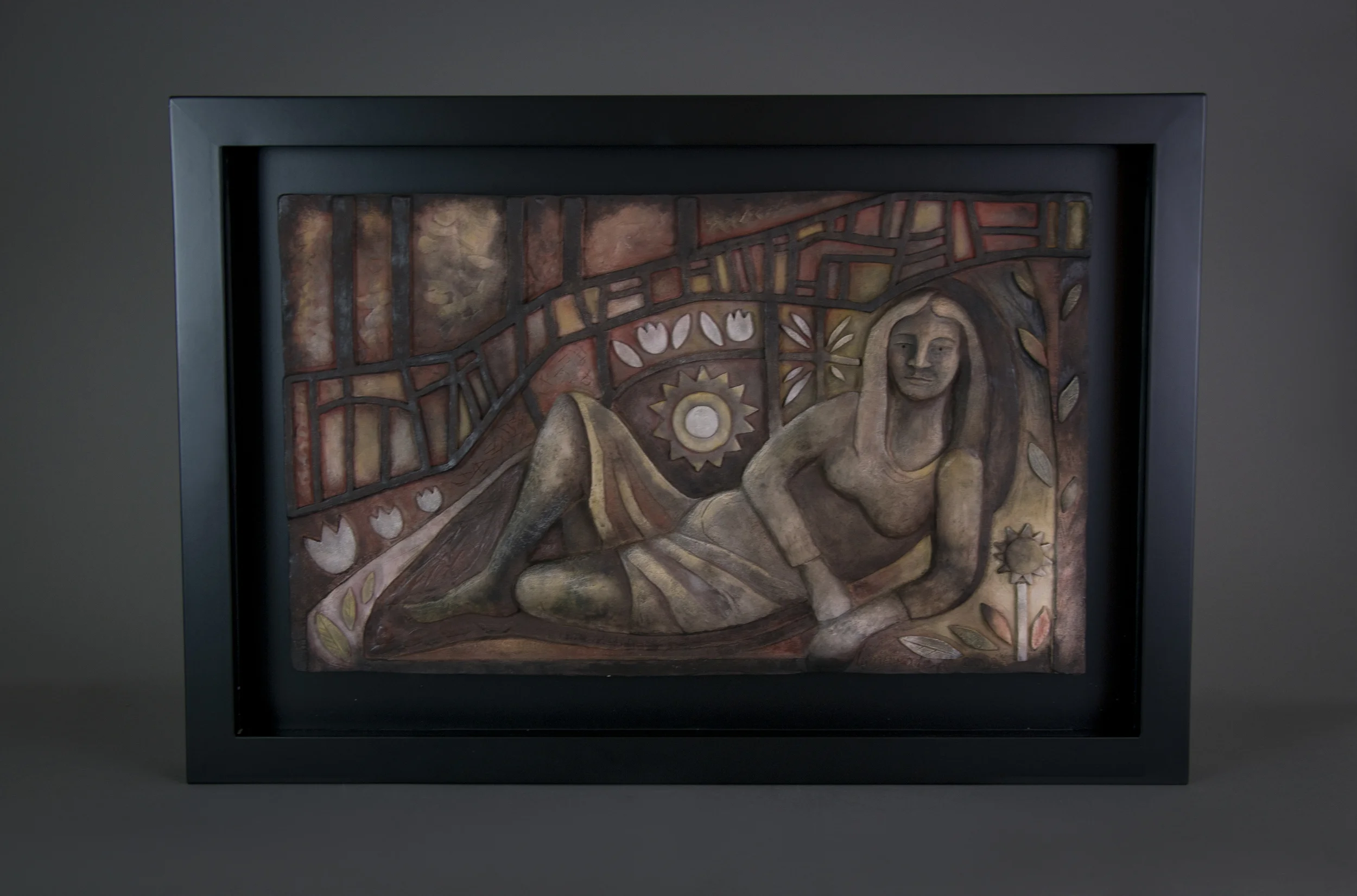 Firelight | Raku clay, bisqued & smoke fired, post-pigmentation| 28" x 18"