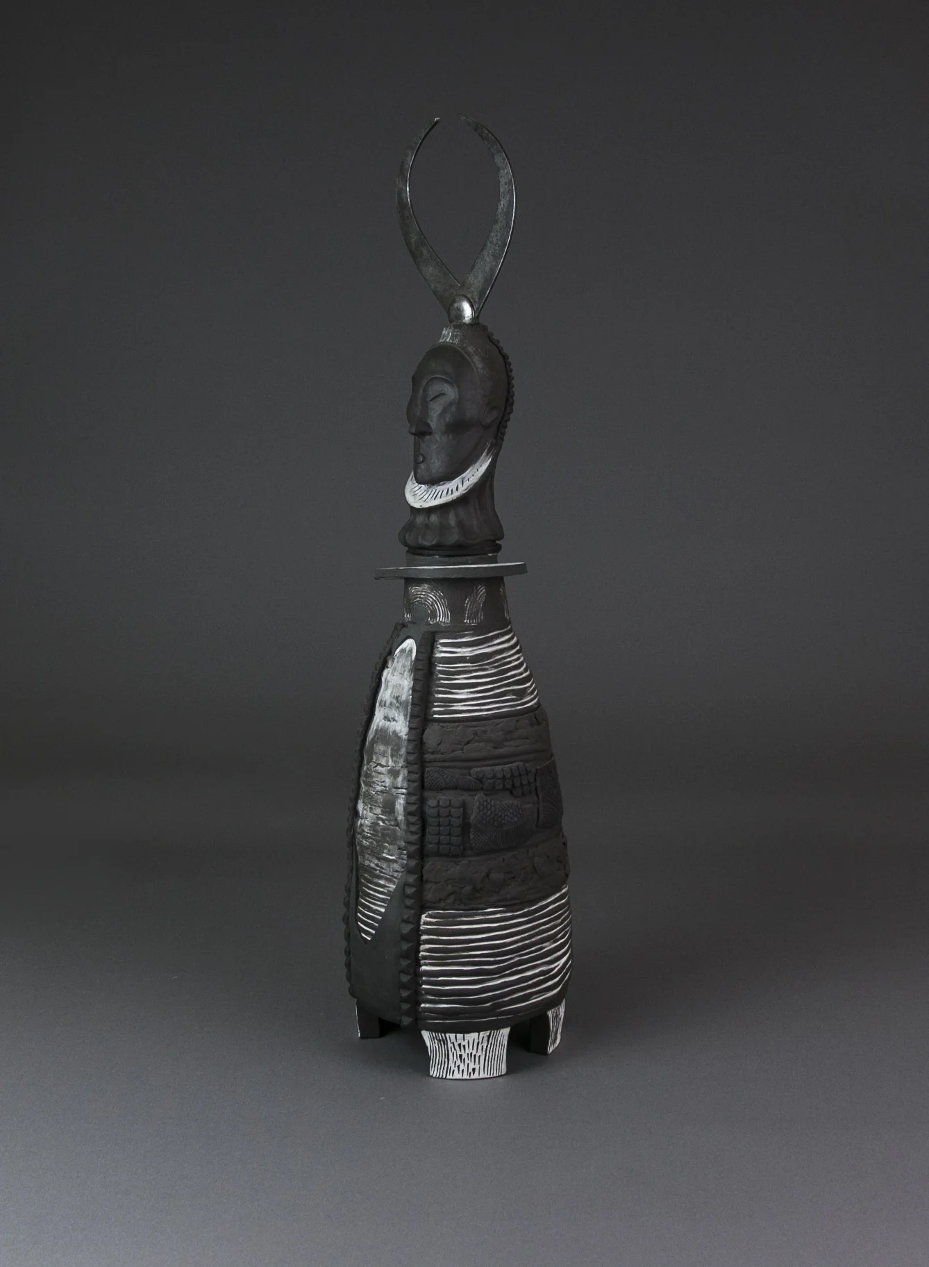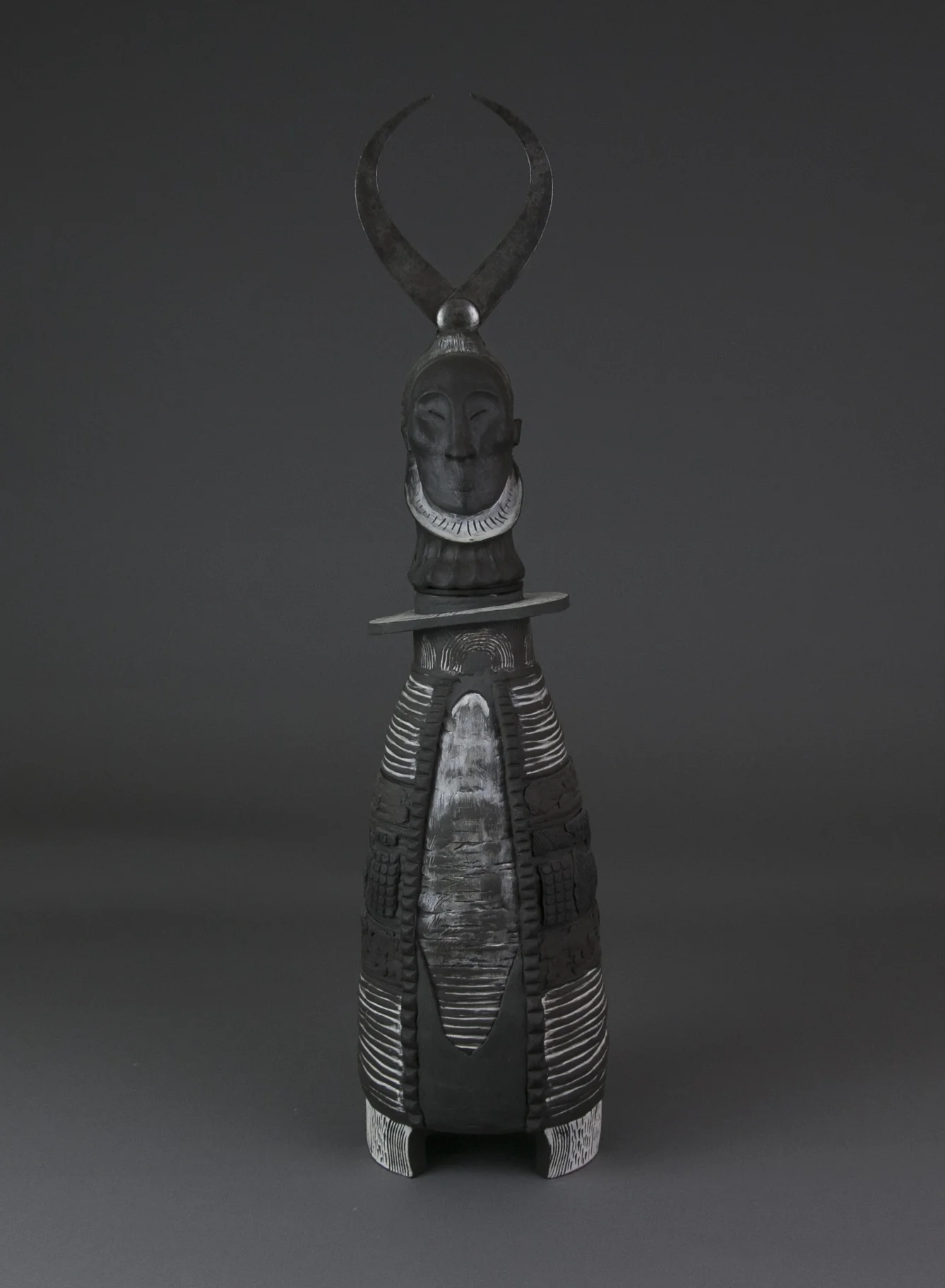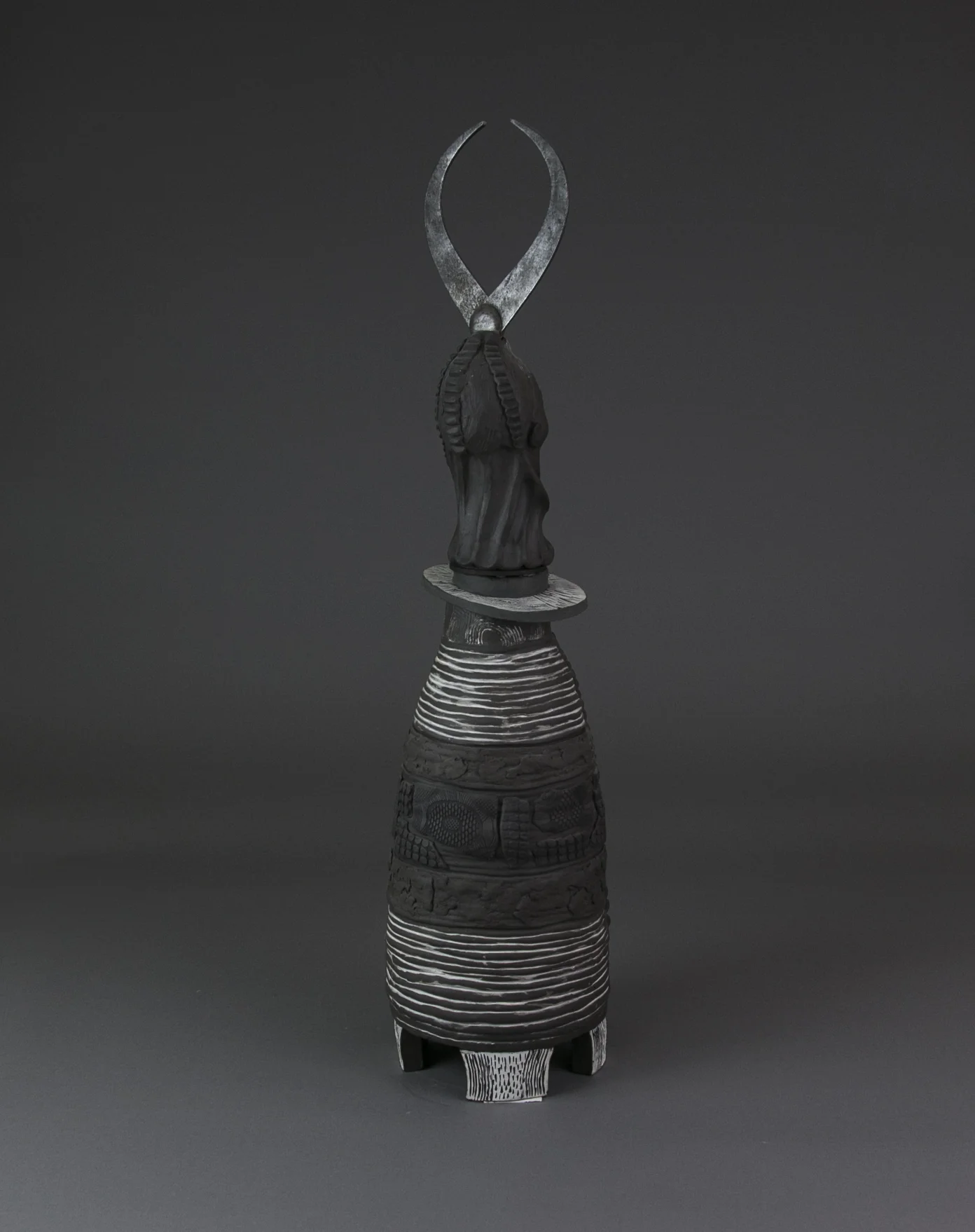 The High Priest, Ally to the Deaf QueenPSH black clay & slip, steel | 29" x 8" x 8"